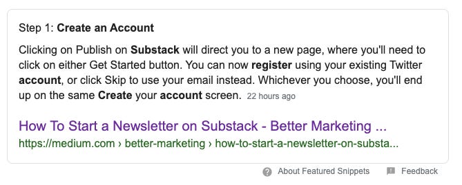 And speaking of visibility, I finally managed to write an article that ranks #1 in Google with several keywords, and with one, in particular, my article is the featured snipped — go me!